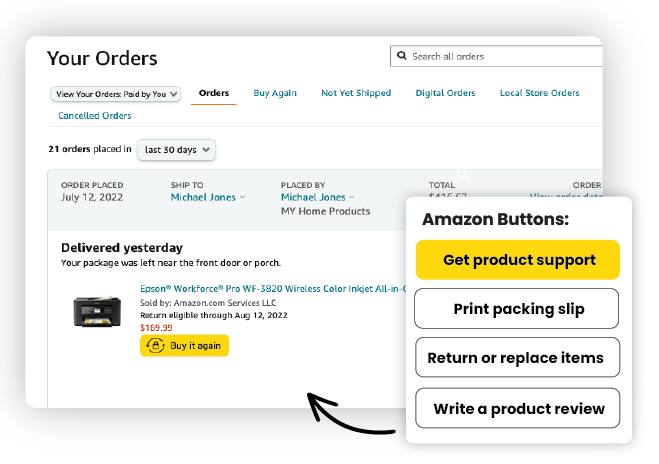 Onsite Support is run by ecommerce sellers who work closely with Amazon on innovative support solutions. For example, Onsite enables the “Get product support” button to your Amazon order page–connecting customers directly with you, the brand. Finally, you can do the things other sellers only dream of!